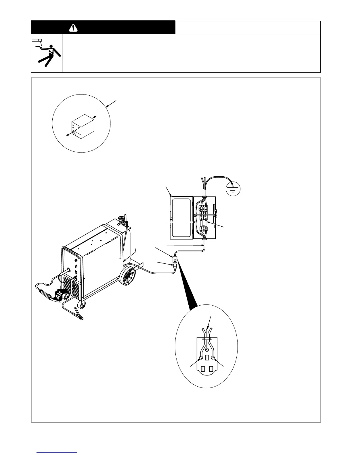 • Turn Off welding power source, and disconnect input power before inspecting or installing.
