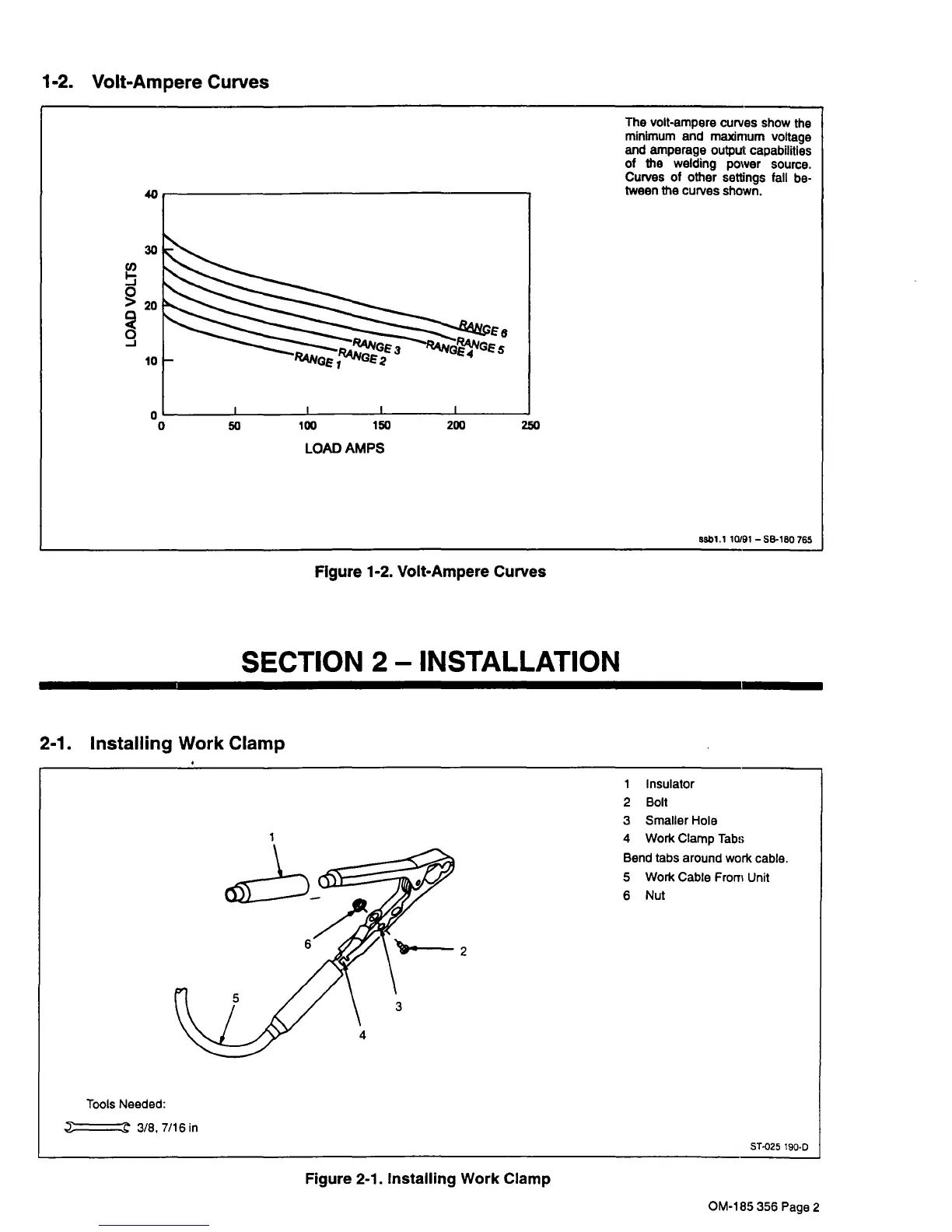 MAC TOOLS MW165 - Installation; Volt-Ampere Curves; Installing Work Clamp