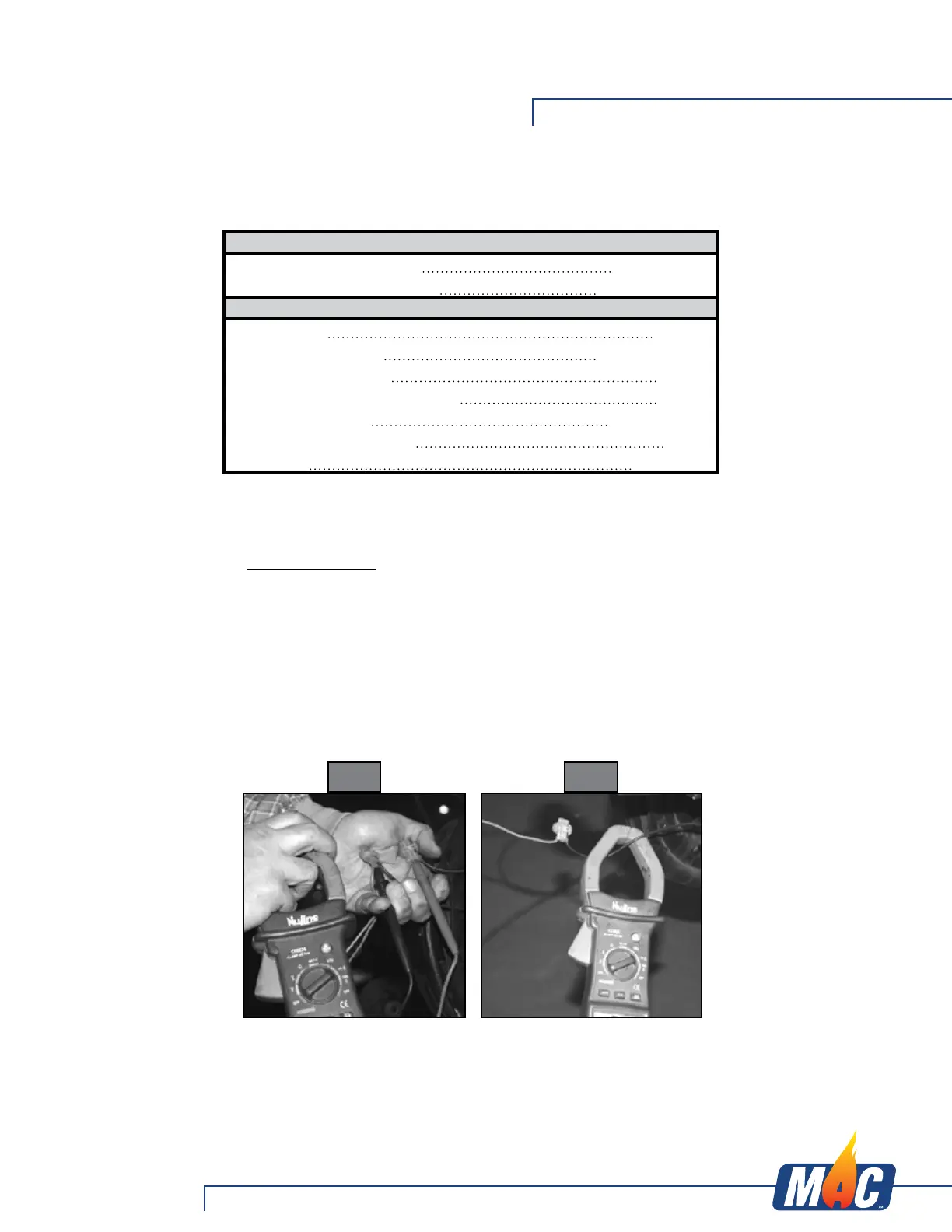the two wires. Consult Amperage Chart on the next page for normal amp readings.