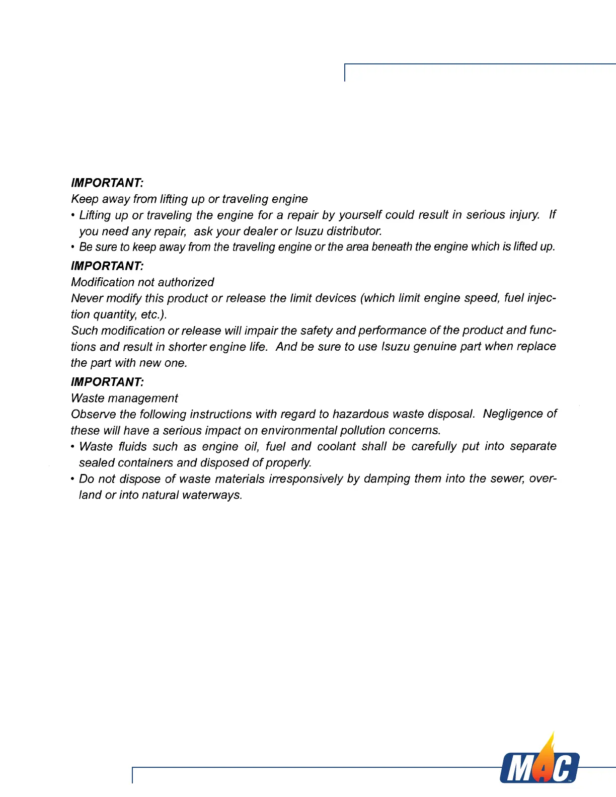 MAC 6000 - Safe work clothing; 1.2.2 Precautions for inspection