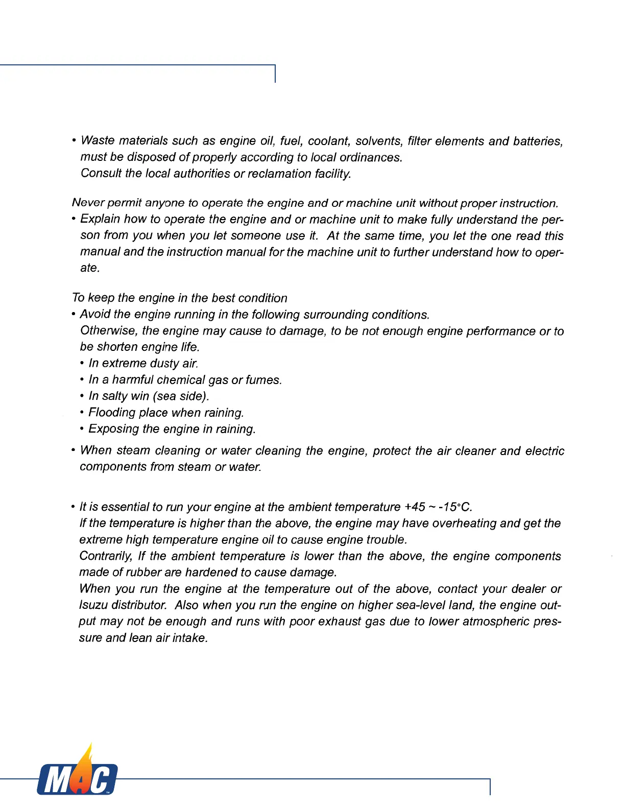 MAC 6000 - Do not expose your skin to high pressure fuel spray; Preventing electric short-circuits