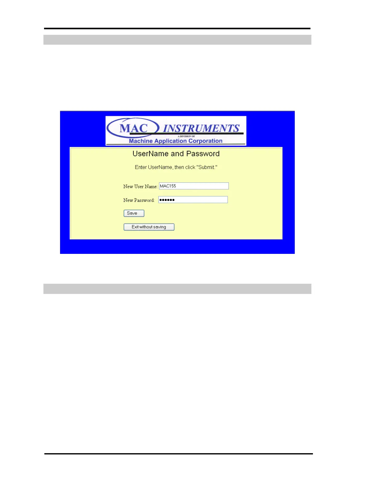 The MAC155 Ethernet interface is password protected. The default