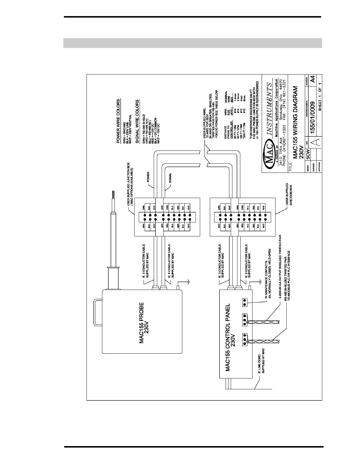 MAC MAC155L - Probe to Controller Wiring (230 V)