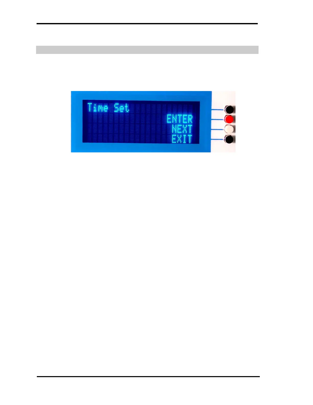 Pressing the lower “Black” pushbutton exits the Time Set menu and then