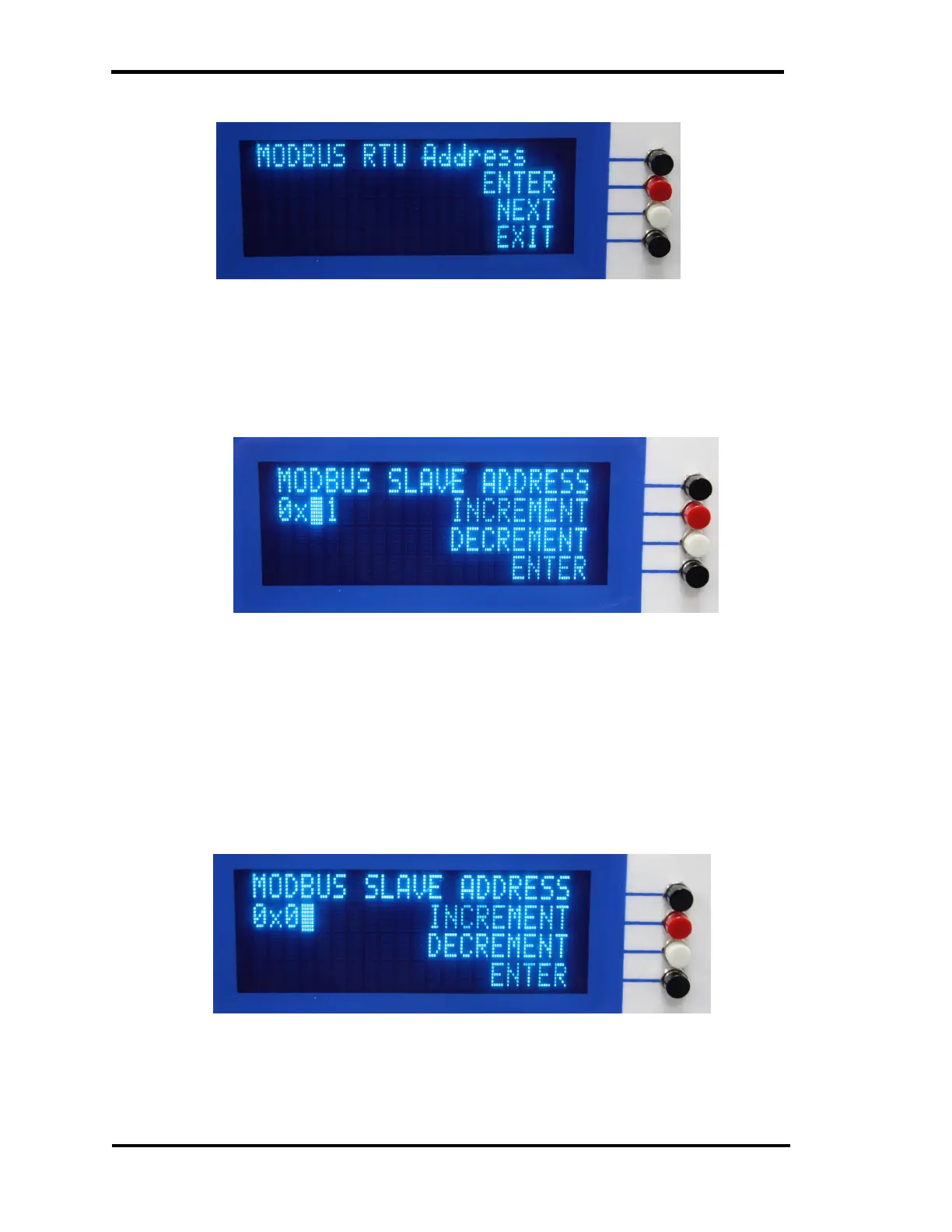 desired MODBUS slave address. Pressing enter will enter the first digit and