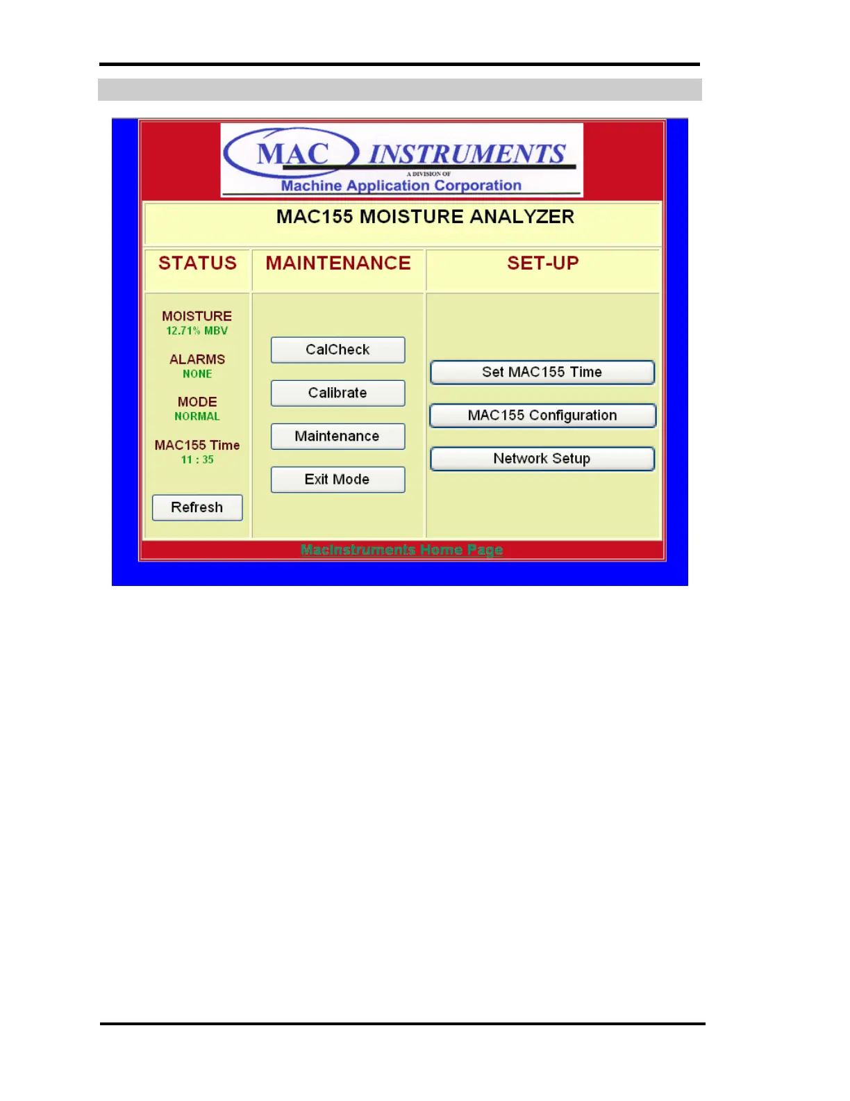 To see any changes in the condition of the MAC155 the “Refresh” button must