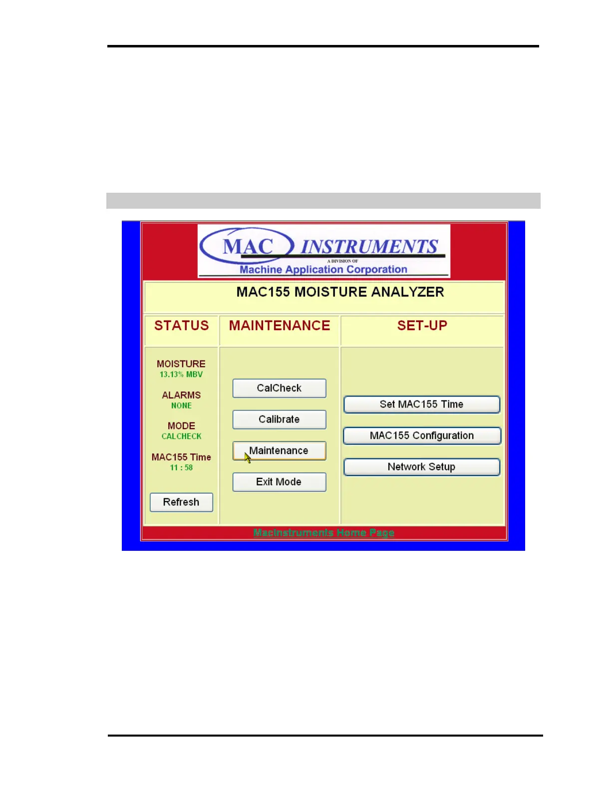 Pressing the “CalCheck” button places the MAC155 into a CalCheck mode.