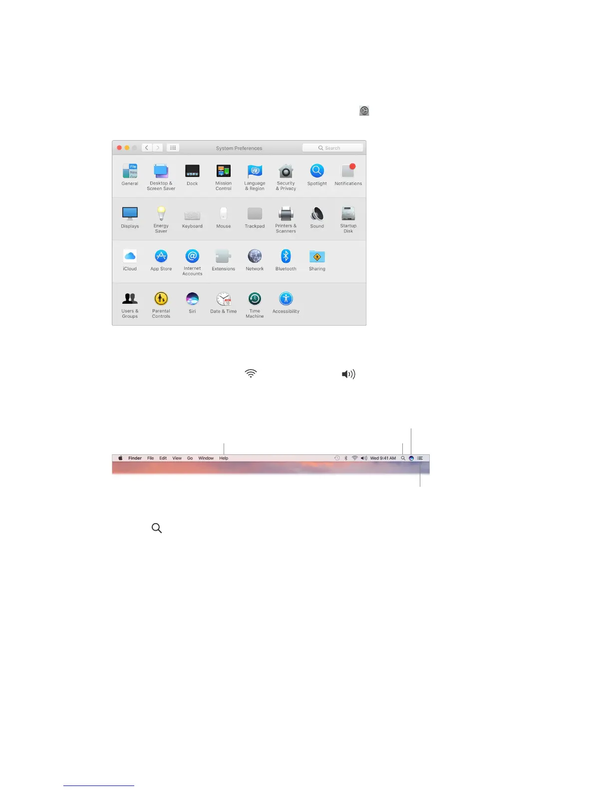 network, check your Wi-Fi status , change the volume , query Siri, and more. The menu