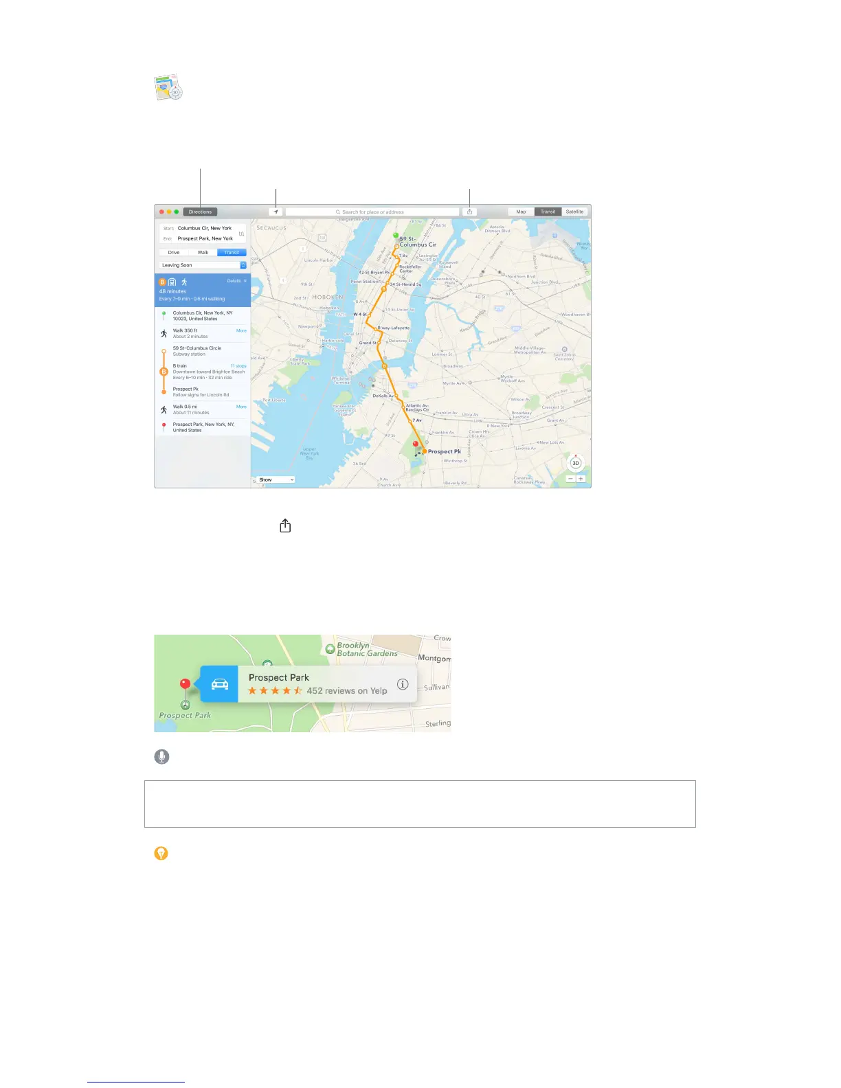 click the Share button to send the directions to your iPhone for turn-by-turn voice navigation.
