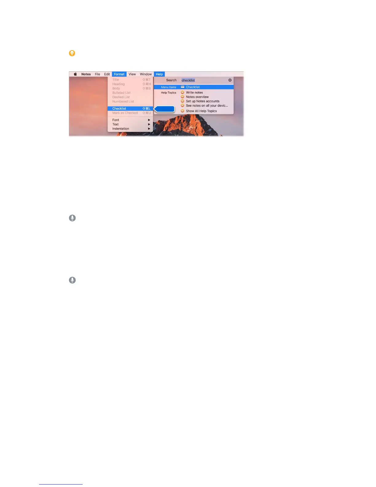 Tip: If you can’t remember the location of a menu item in an app, search for it in Help. Place