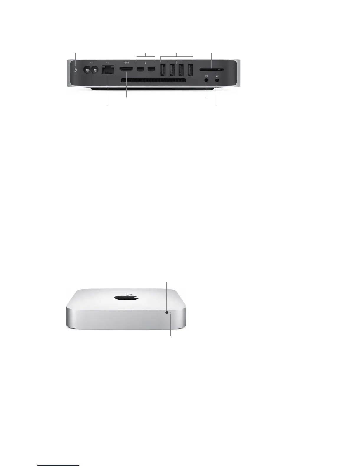 Power button: Press and hold for three seconds to turn your Mac mini on or o, or press to put
