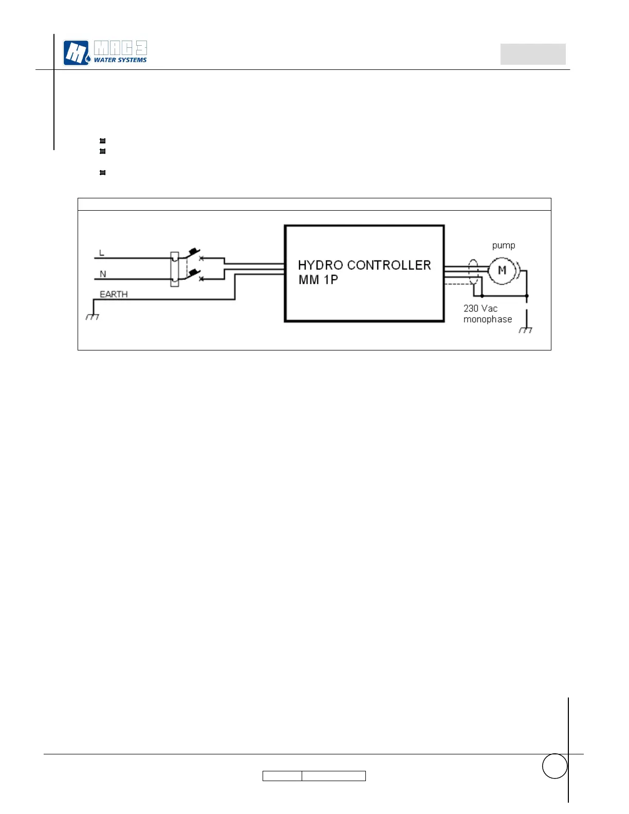 Connect the three-wire input cable (phase, neutral, earth) to the mono-phase mains at 230 Vac