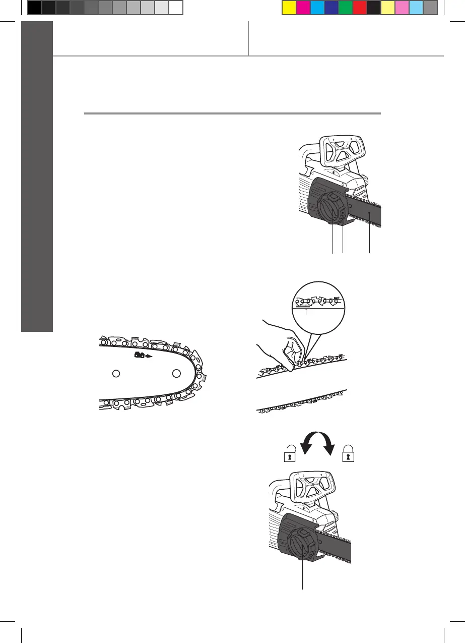 Turn the tension wheel (8) until the chain >