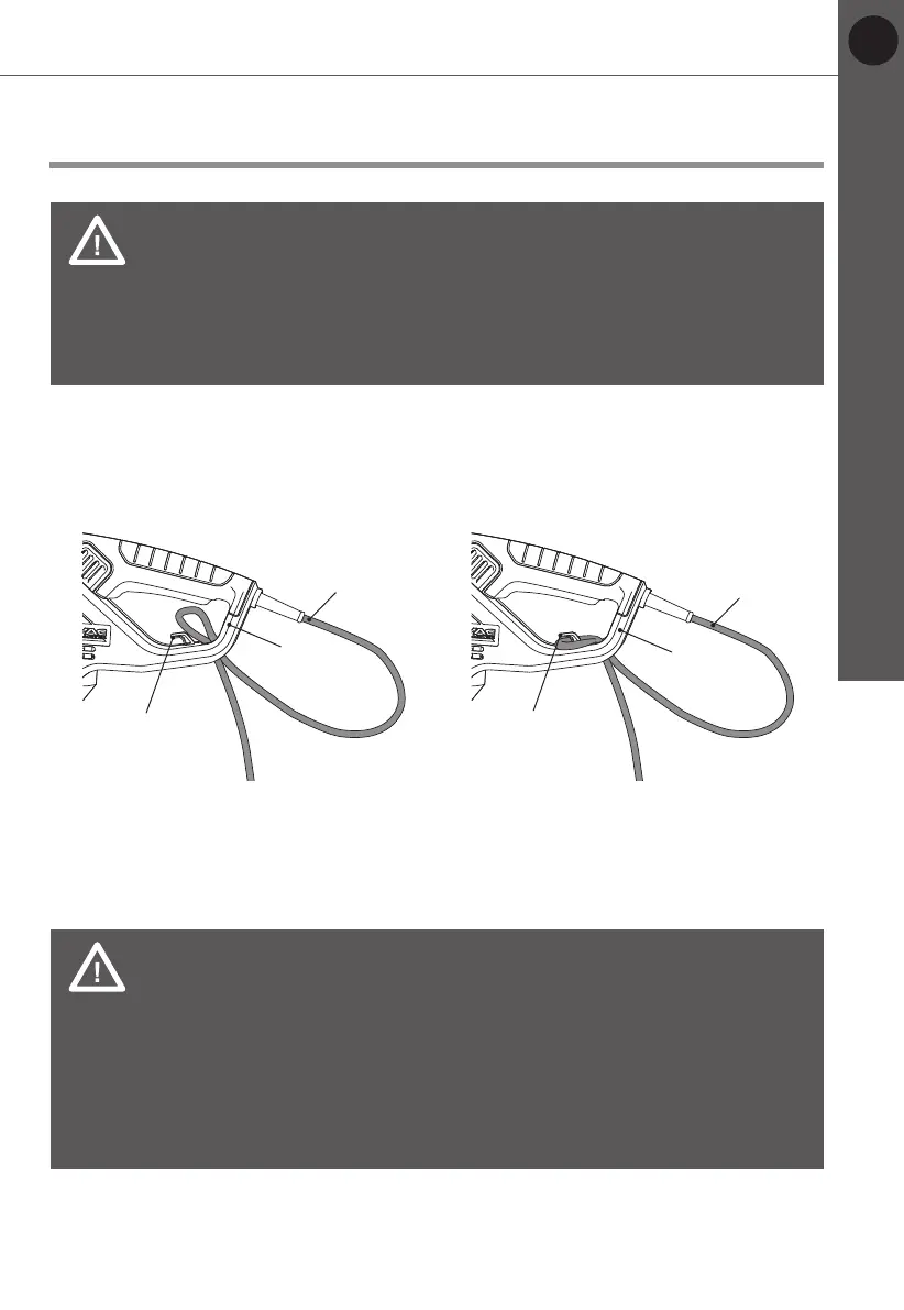 1. Double the power cord (10) back, about 60 cm from the power guard and lead