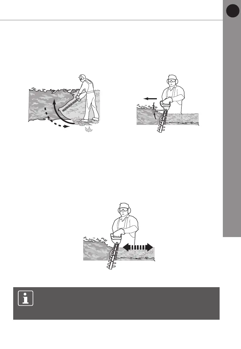 8. When cutting wide hedges with the cutting area in sight move the cutting