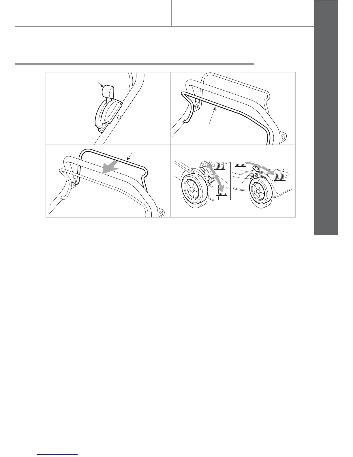 La regolazione dell’altezza di taglio si effettua per mezzo delle apposite leve (1).