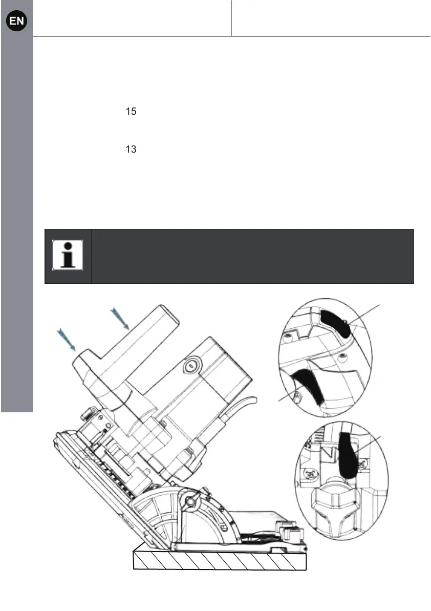 2. Set the desired plunge depth. Ensure that the guide rail track compensation (15)