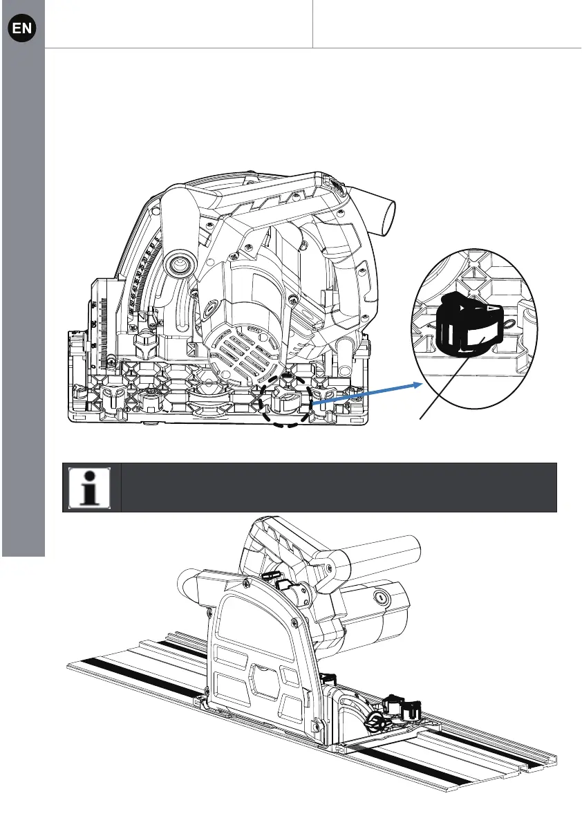 NOTE : When you slide the saw onto the guide rail of the track,the