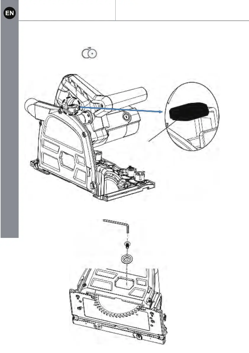 5. Use a 5 mm hex key (provided with this tool) to turn the screw at the saw blade