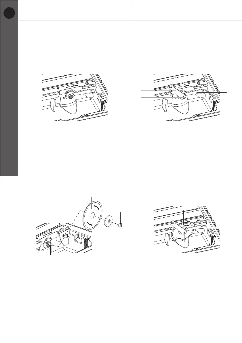 > Tighten arbor nut (21) clockwise using angle disc spanner (20).