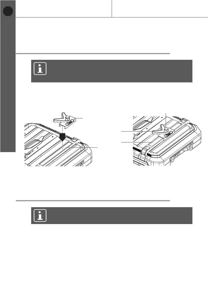 > Place mitre cutting guide (13) on parallel cutting guide (12).
