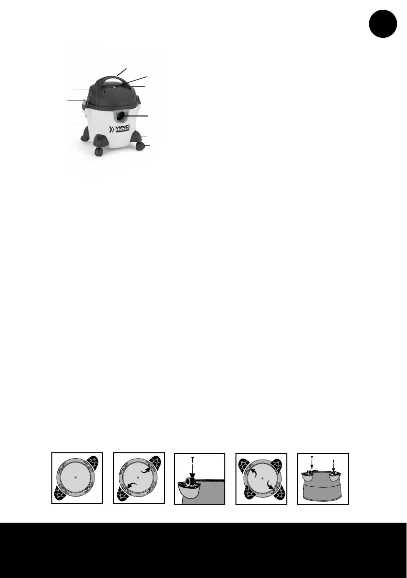l’aspirateur et tous les accessoires de l’emballage. Ouvrez les pinces de xation avec vos