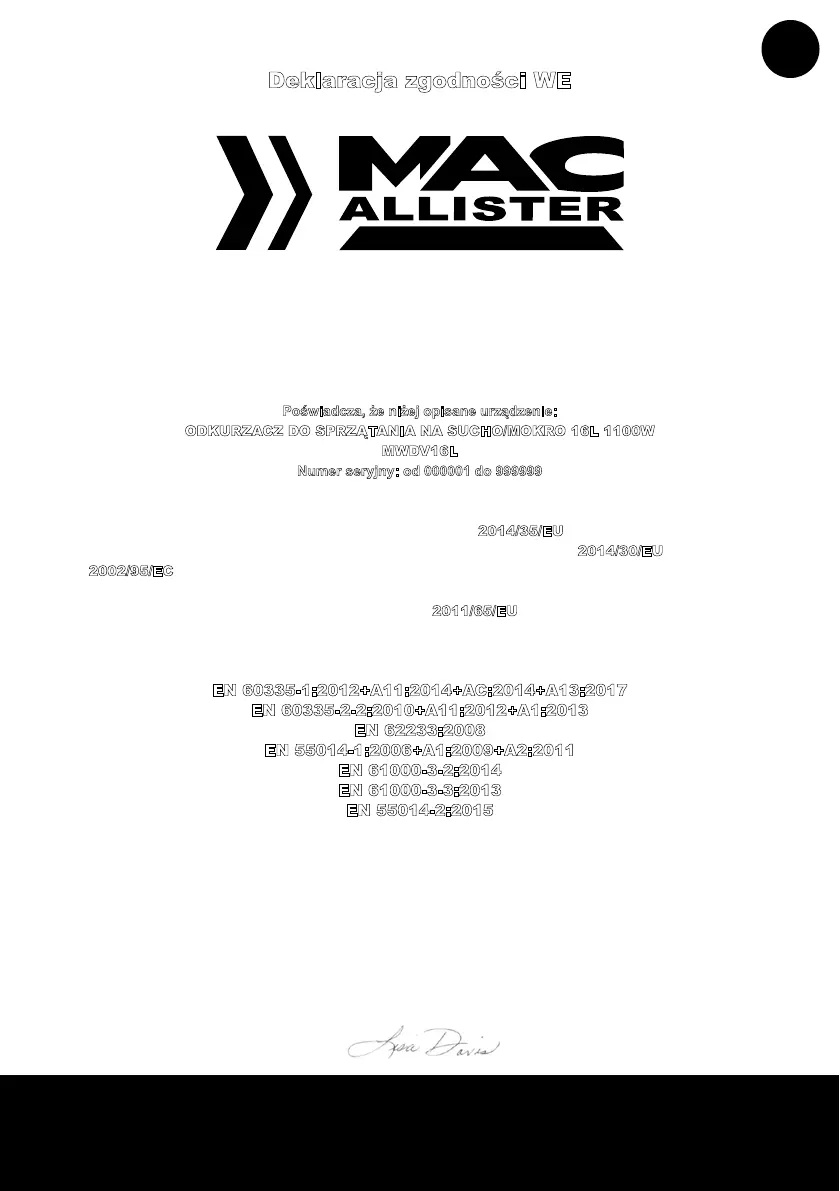 Zgodność z zasadniczymi wymaganiami w zakresie ochrony zdrowia i bezpieczeństwa poniższej dyrektywy: