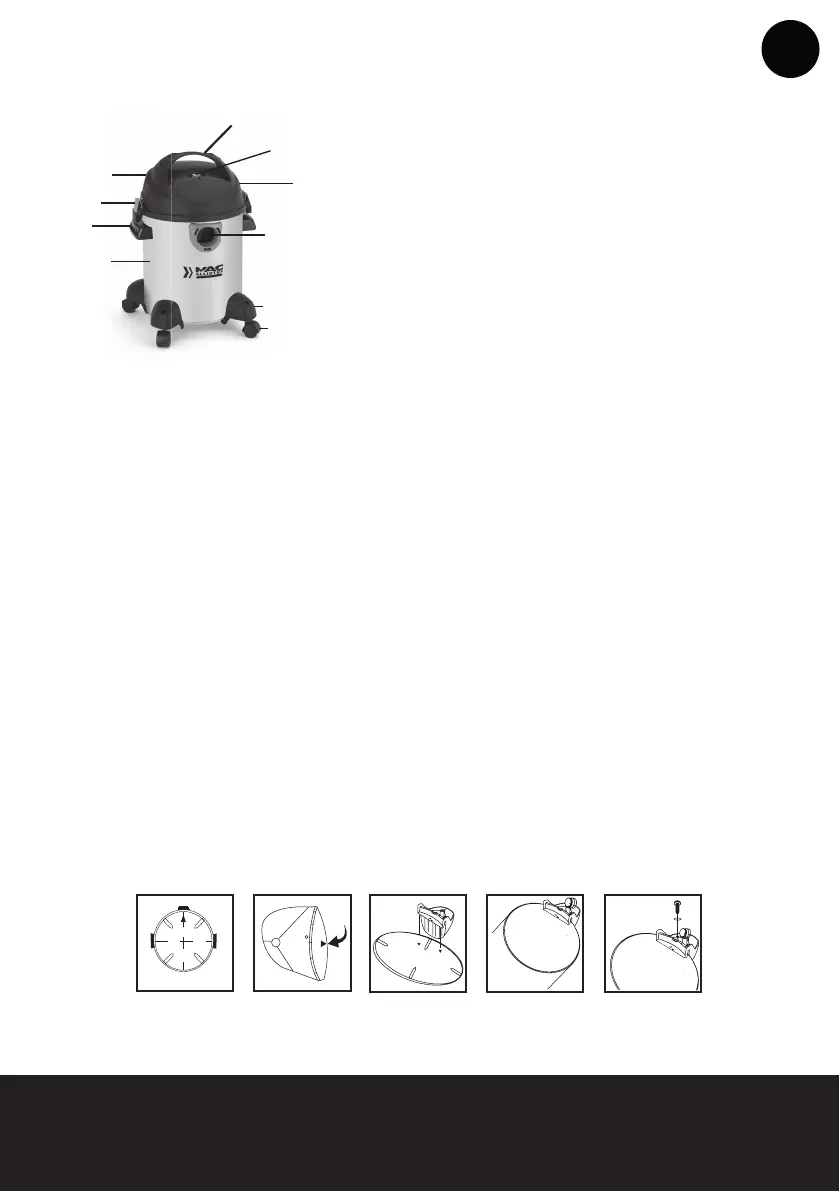 Monte en el depósito las asas laterales utilizando los tornillos suministrados.