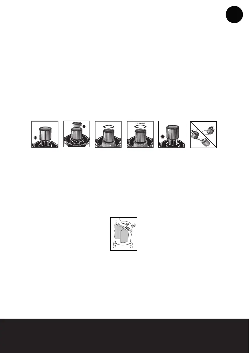 în care ltrul a fost utilizat pentru o aspirare udă, trebuie curățat și uscat înainte de utilizarea