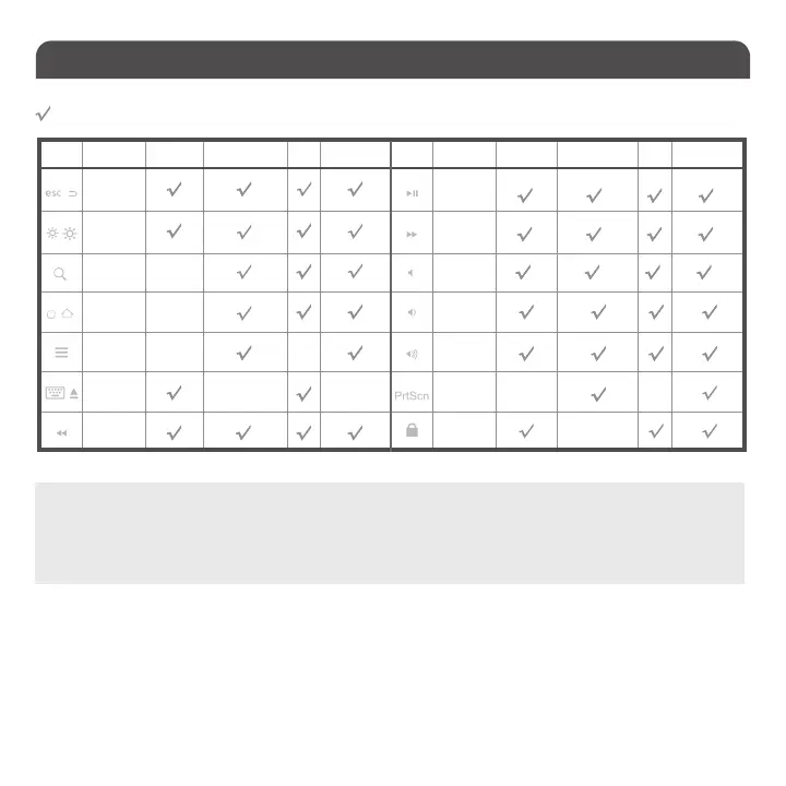 List of shortcut keys and what systems are supported.