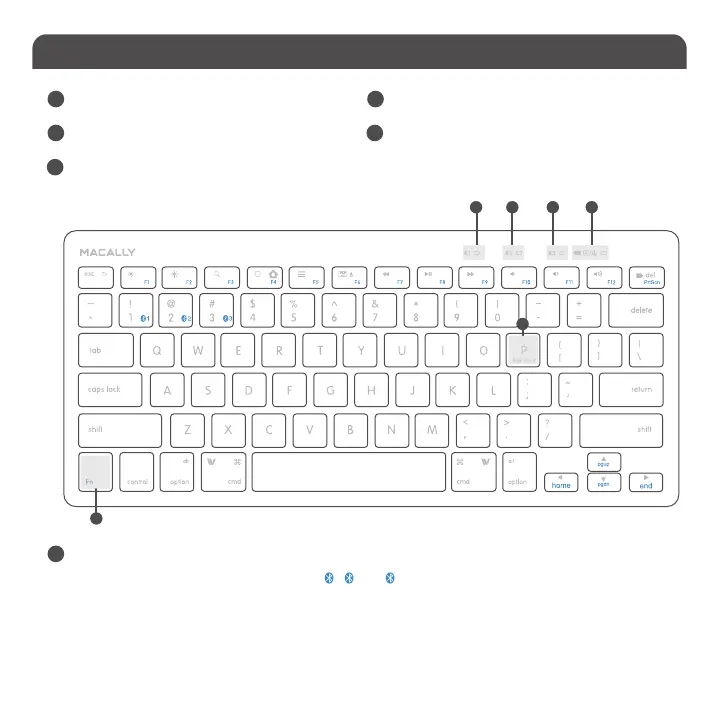 1. Press Fn with one of Bluetooth device keys, 1, 2 and 3 to select a Bluetooth device to use the keyboard