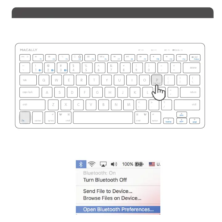 1. After a Bluetooth device(for Mac) is selected, for the first time use, pairing is required. Press Fn and P keys