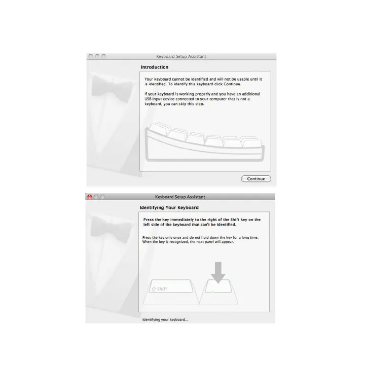 5. When Mac prompts you a message, “The keyboard can not be identified...please follow Keyboard