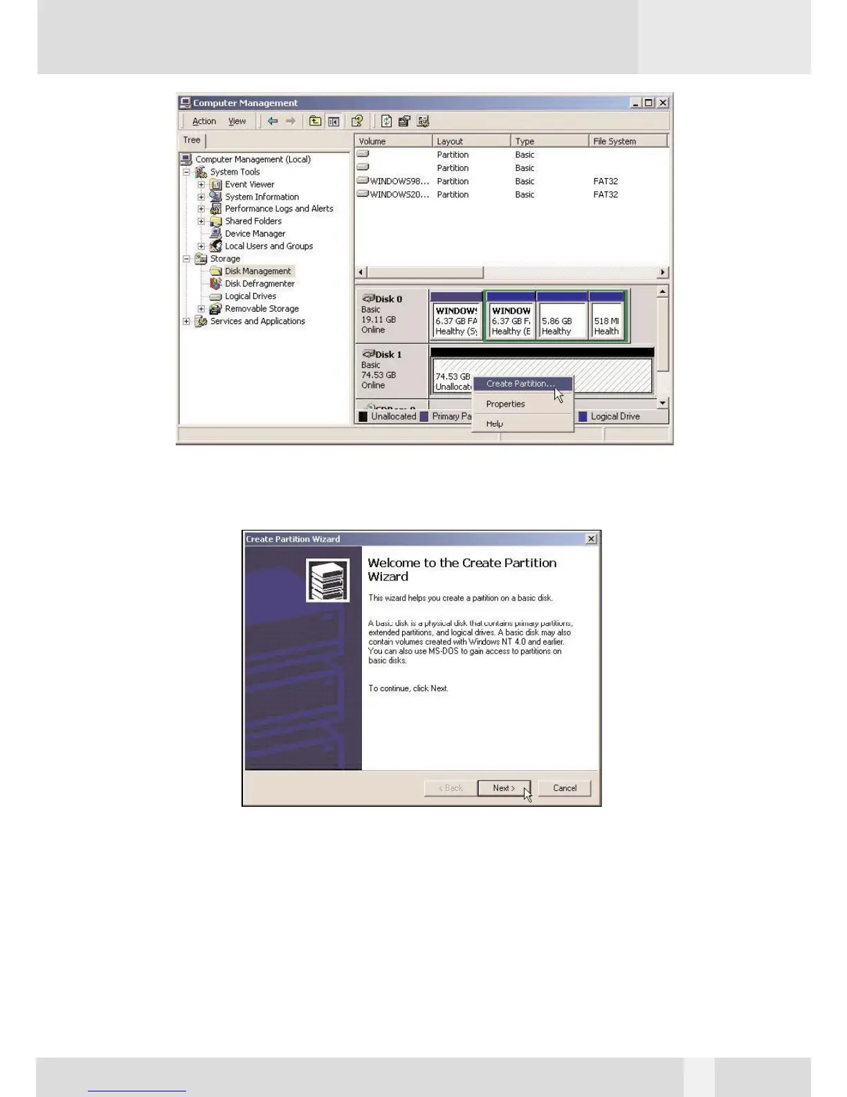 7. Follow the onscreen instruction to partition and fully format the drive.
