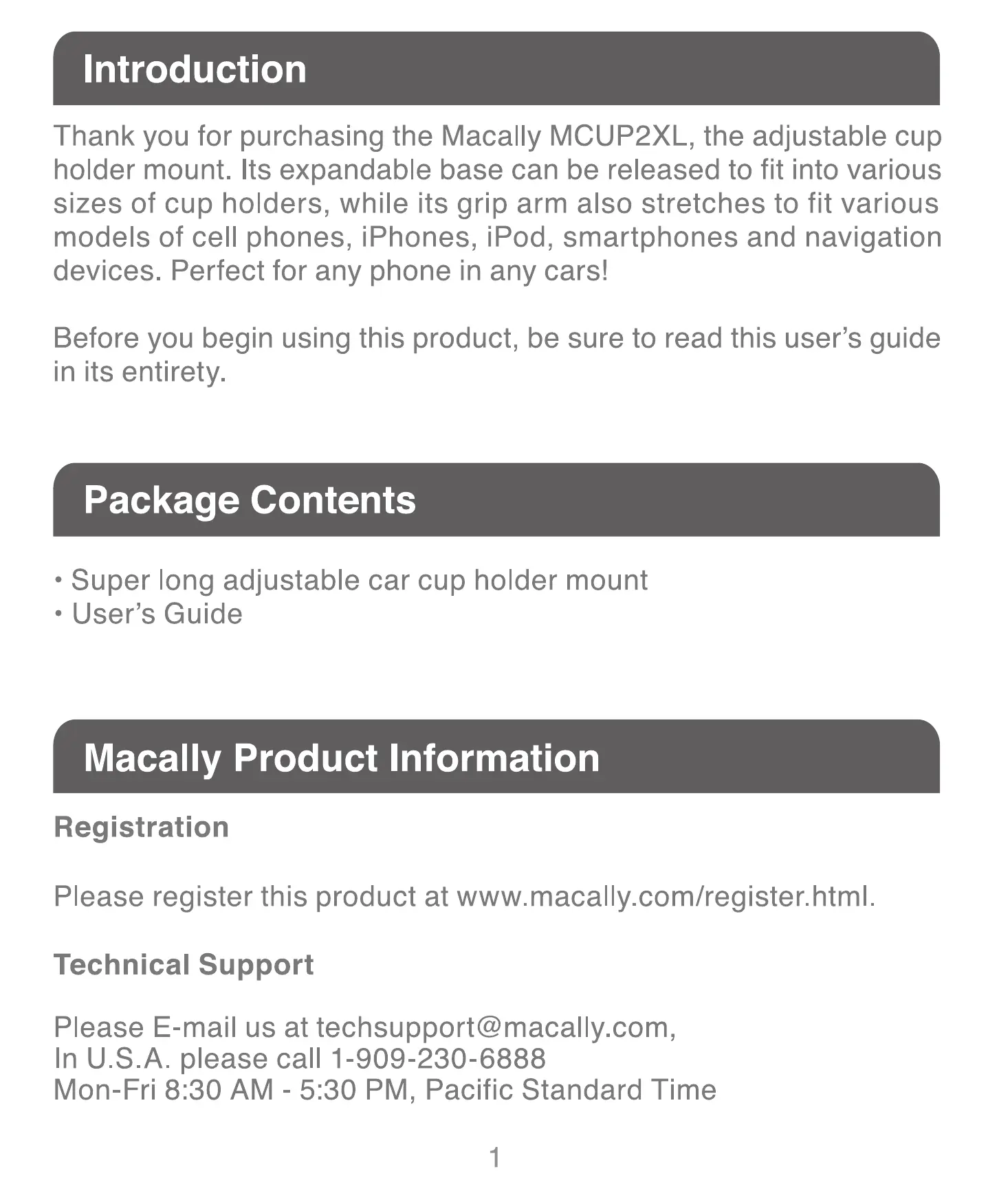Macally MCUP2XL - Introduction; Package Contents; Macally Product Information; Registration