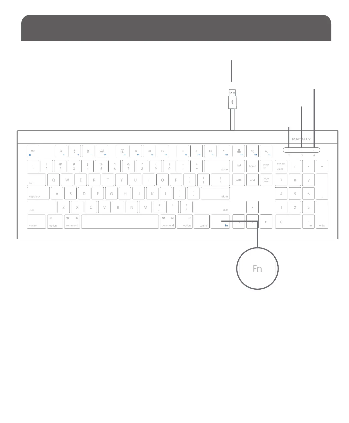 Macally MKEYE - Hardware Basics; USB Plug and Key Lock Indicators; Fn Lock Mode Operation