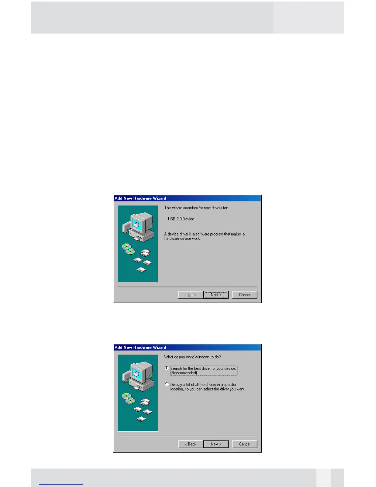 port. The “Add New Hardware Wizard” should automatically appear as