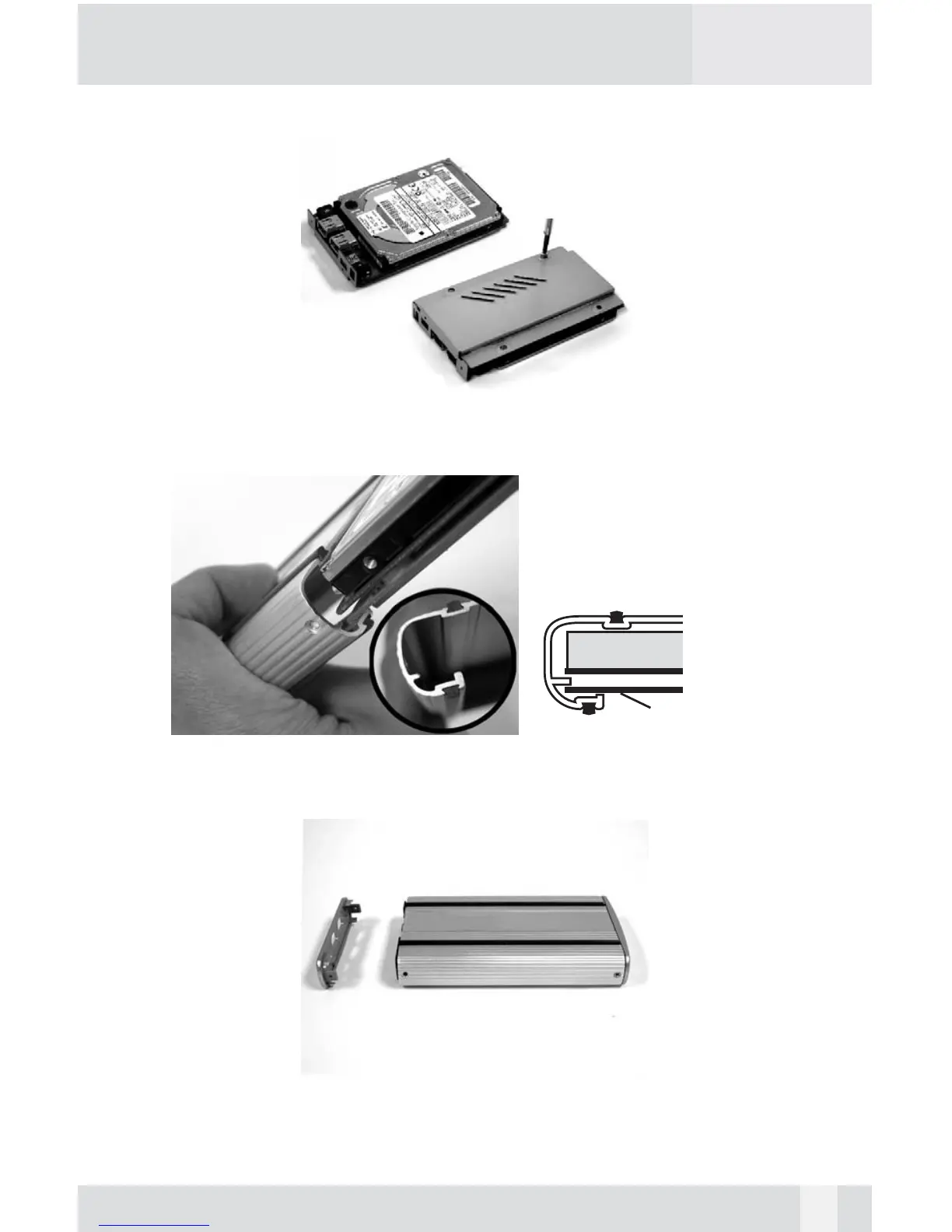 5. Align the Bottom Tray to the Sleeve Slot. Slide and push the hard drive/