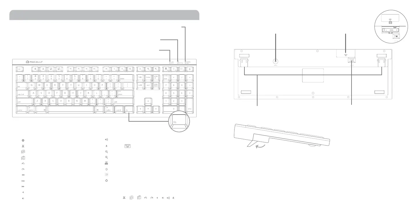 Low battery indicator - Low keyboard battery level indicator. Please replace batteries.