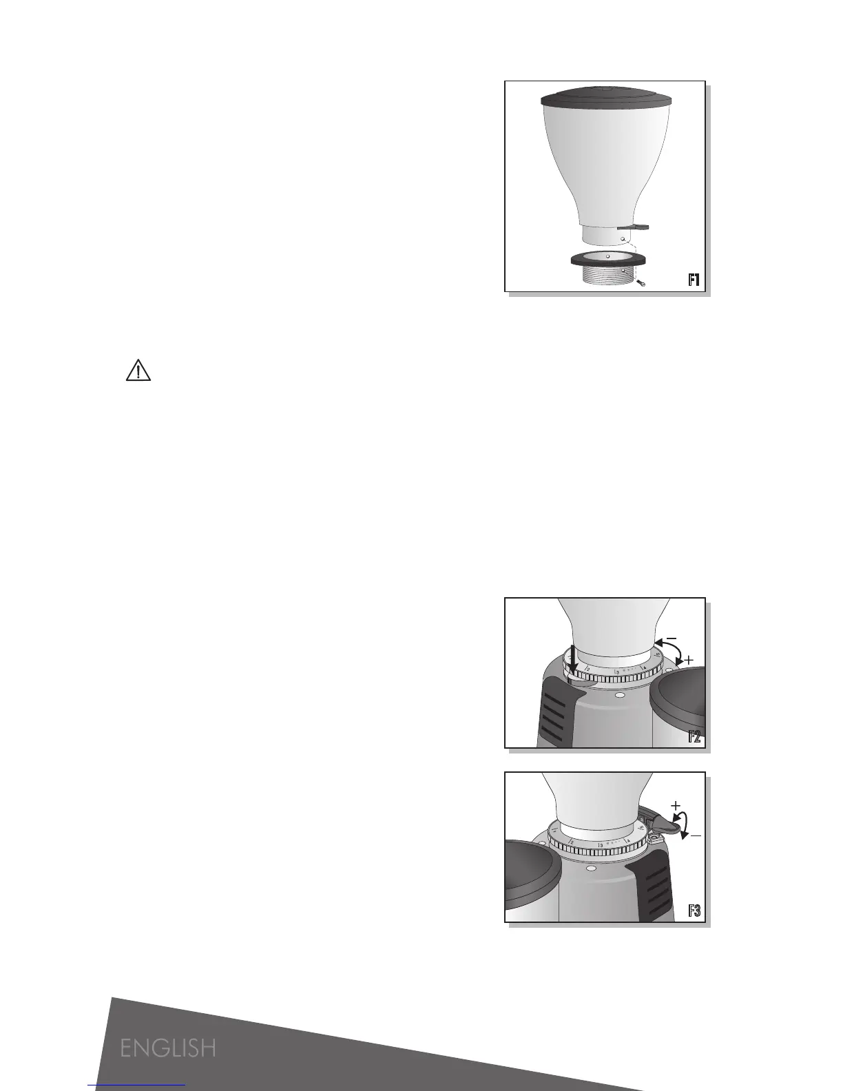 grinder when it is turned off and without any coffee inside (see figure F2).