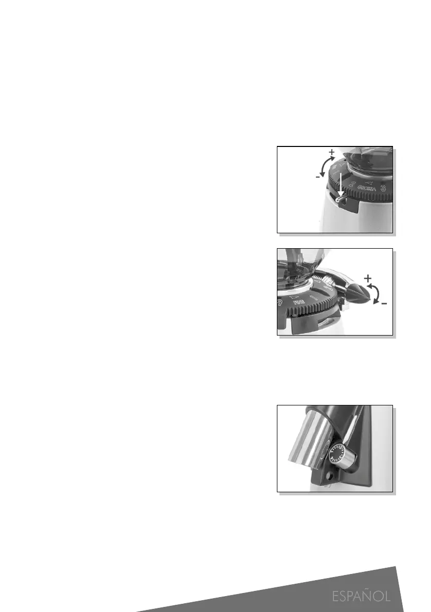 el grosor de molienda del café. “-“ para reducir el grosor de molienda