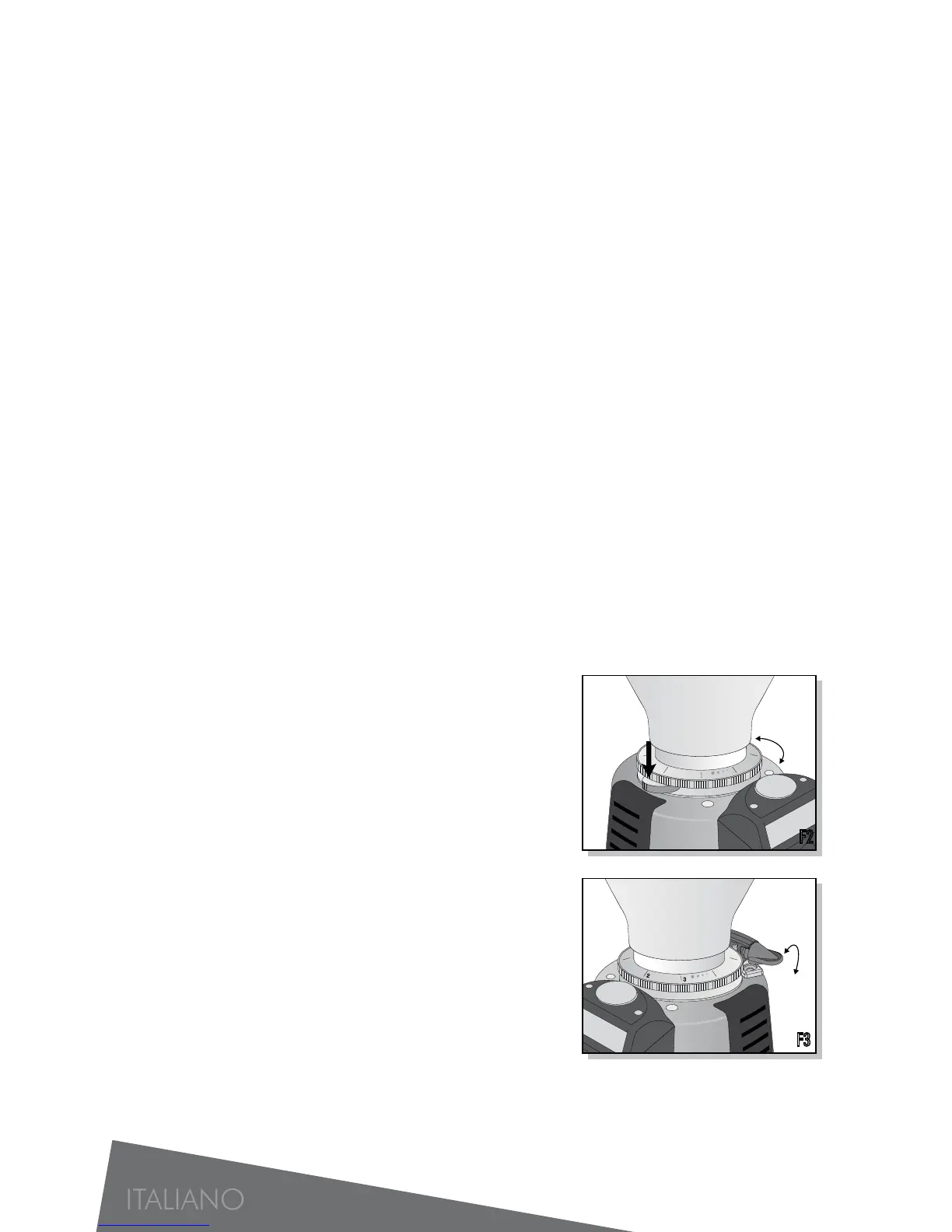 (vedi figura F2) +” indica il senso di rotazione per aumentare la grana del