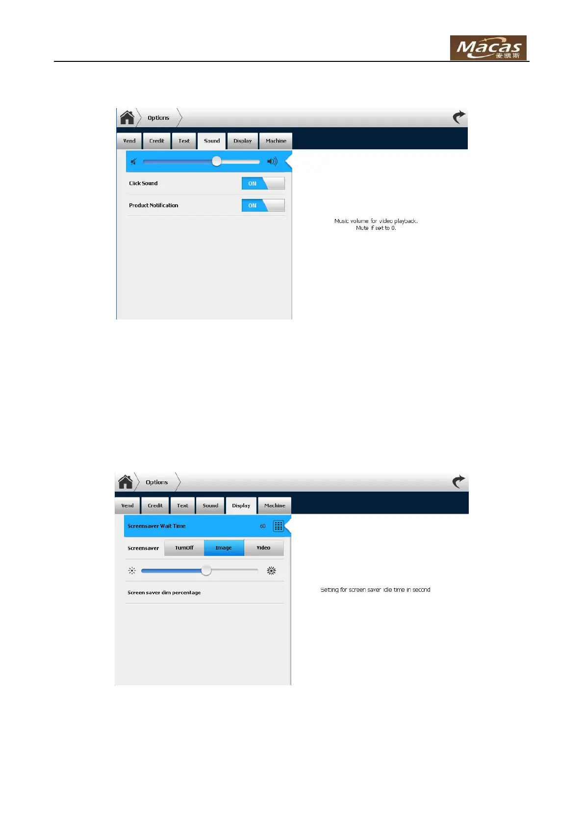 Screensaver Wait Time – Setting for screensaver idle time in second.