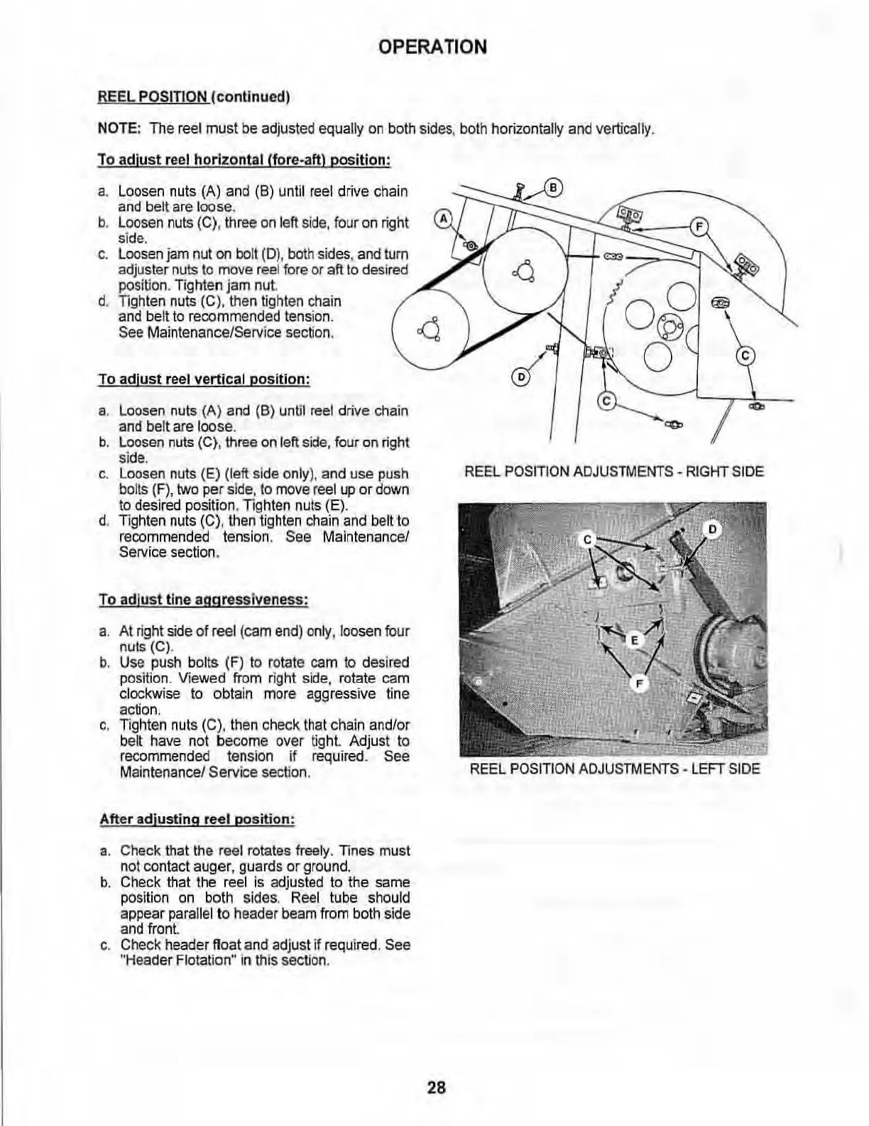 a. Loosen nuts (A) and (8) until reel drive chain