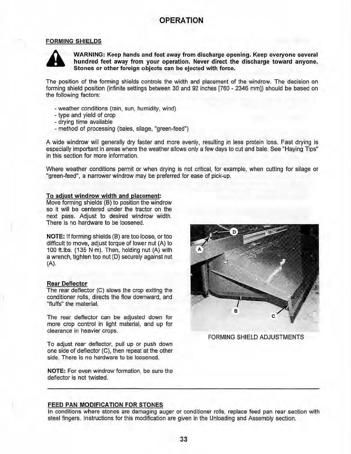 The rear deflector (C) slows the crop exiting the
