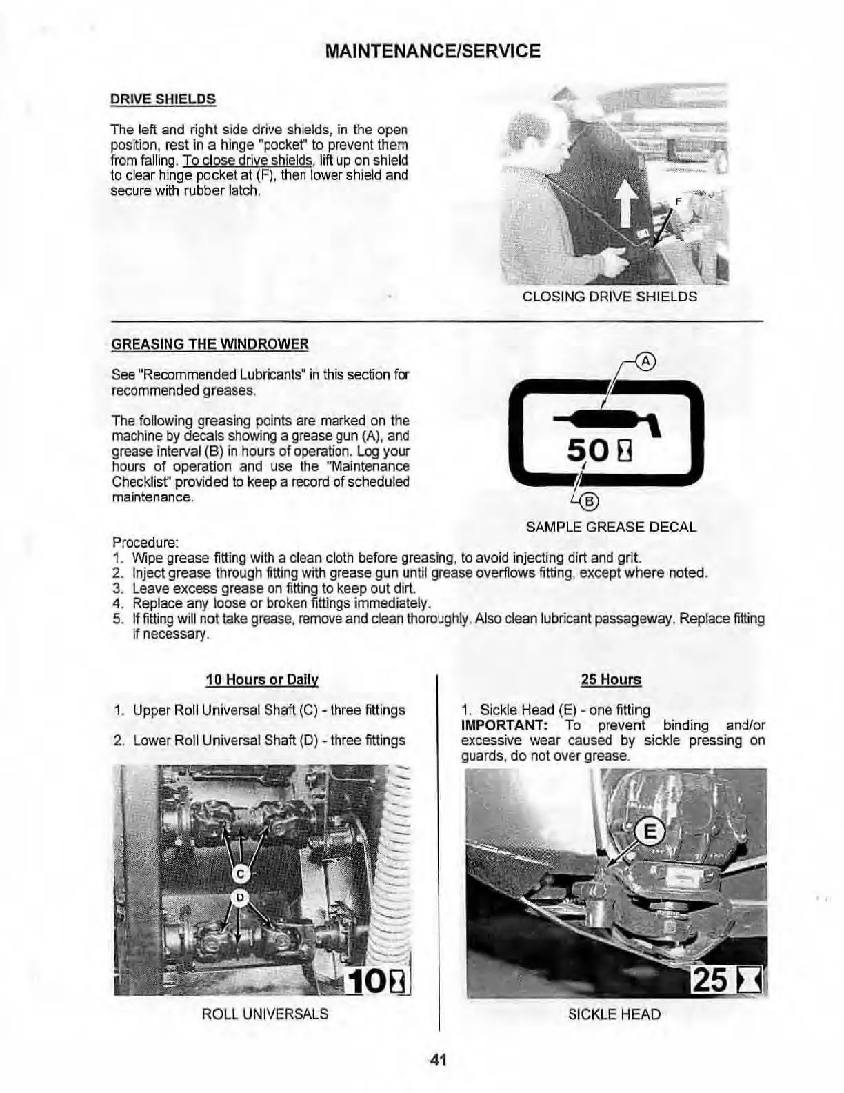 MacDon 5000 - Closing Drive Shields; Greasing the Windrower