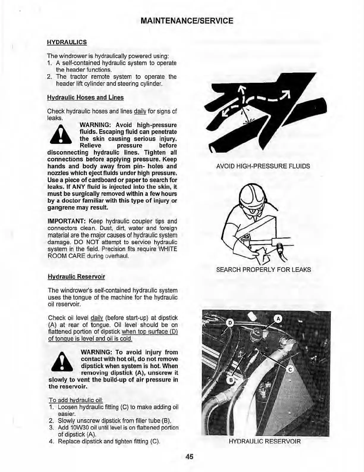 hydraulic lines. Tighten all