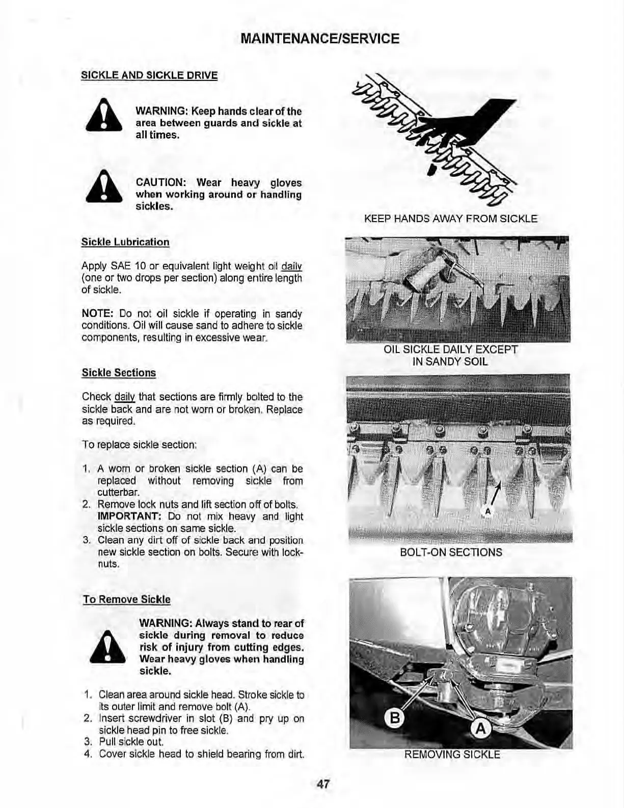 MacDon 5000 - Sickle and Sickle Drive; Sickle Lubrication; Sickle Sections; Sickle Removal