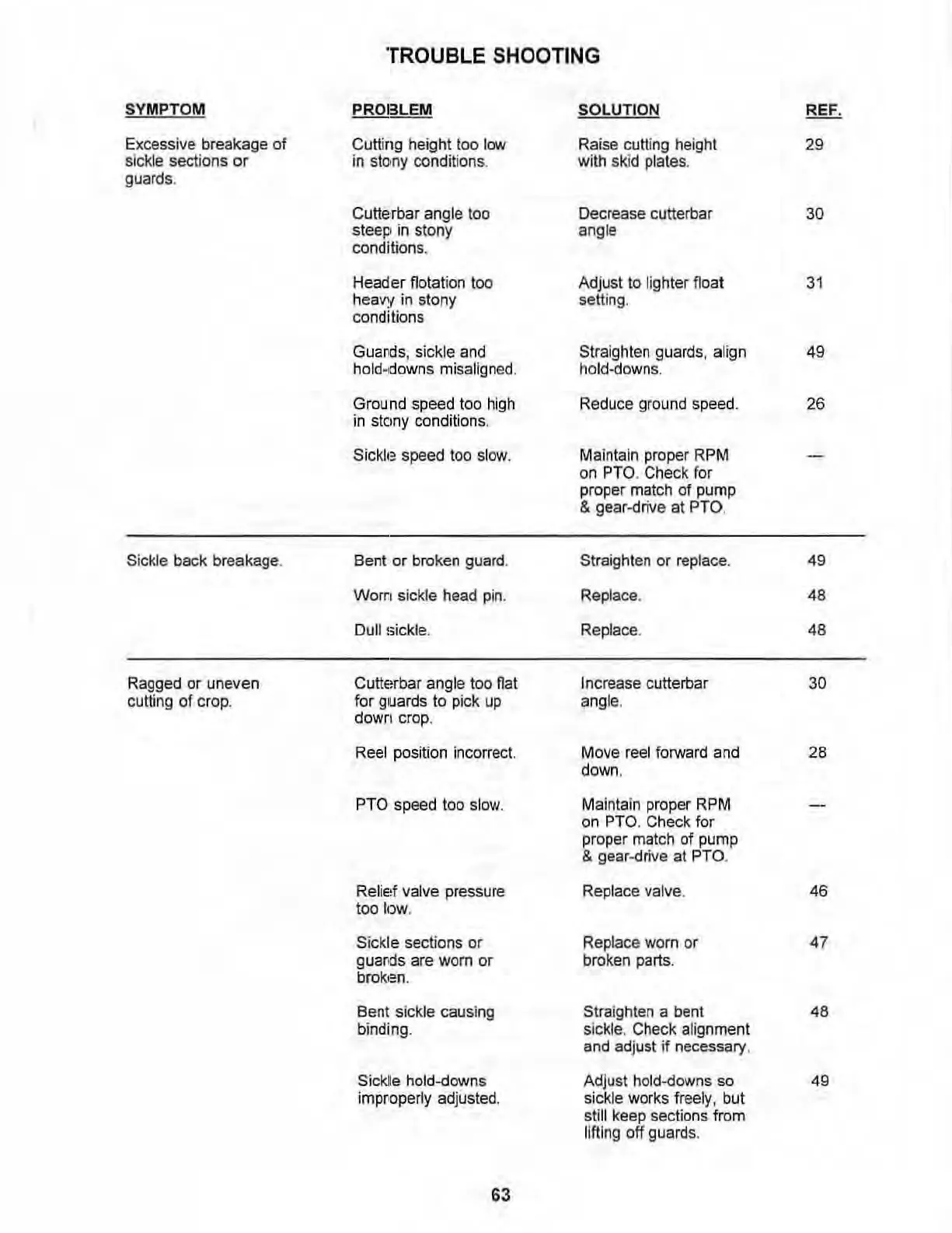 improperly adjusted. sickle wo