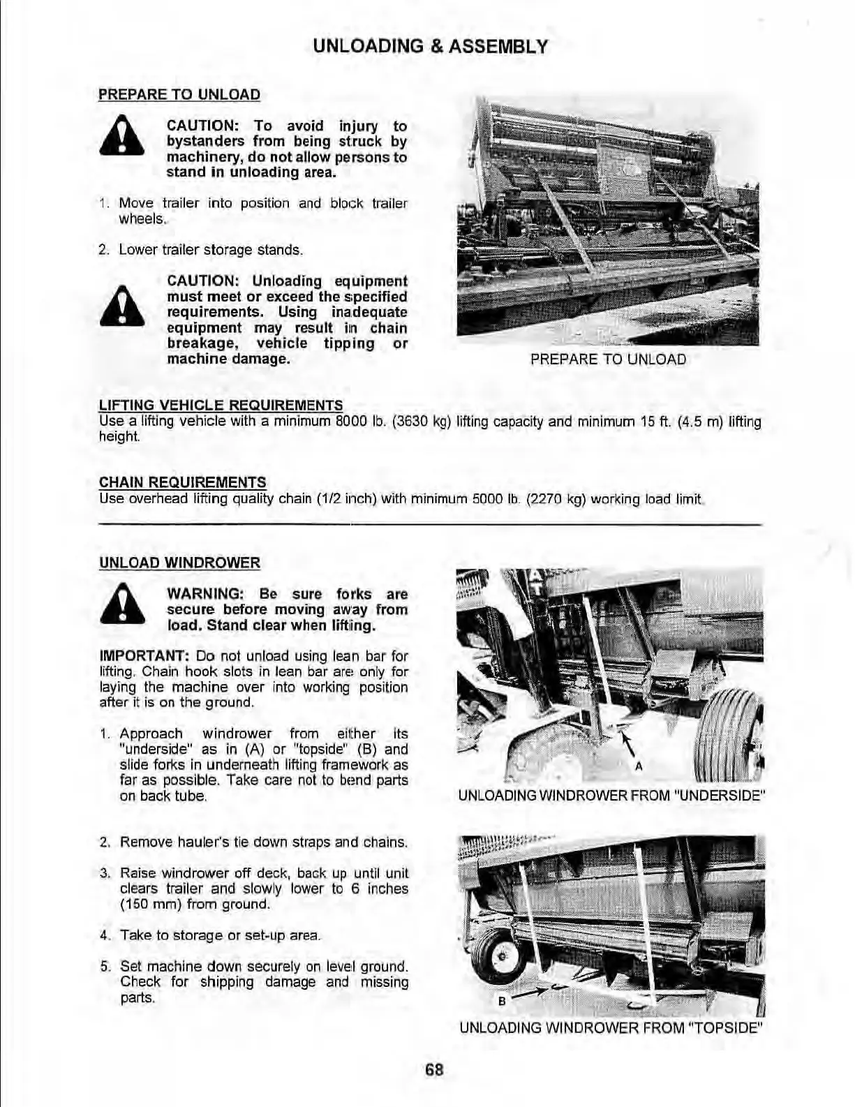 CAUTION: Unloading equipment